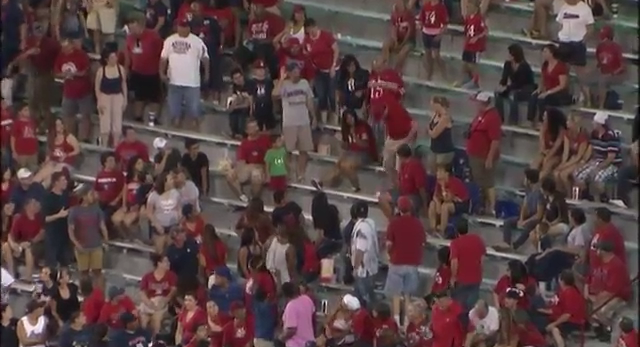 In what can only be described as the ultimate party poop, some guy at a University of Arizona vs. University of Nevada, Las Vegas football game decided that the crowd’s lighthearted volleying of a beach ball needed to come to an end. He also felt that he deserved applause for his efforts, even if he and his two companions were the only ones clapping.