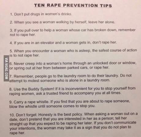 One day, I hope to live in a world where instead of telling people (Read: women and sexual minorities) what to do to protect themselves from being raped, we teach people not to rape and make the sanctions for rape so horrible that people don’t want to rape.