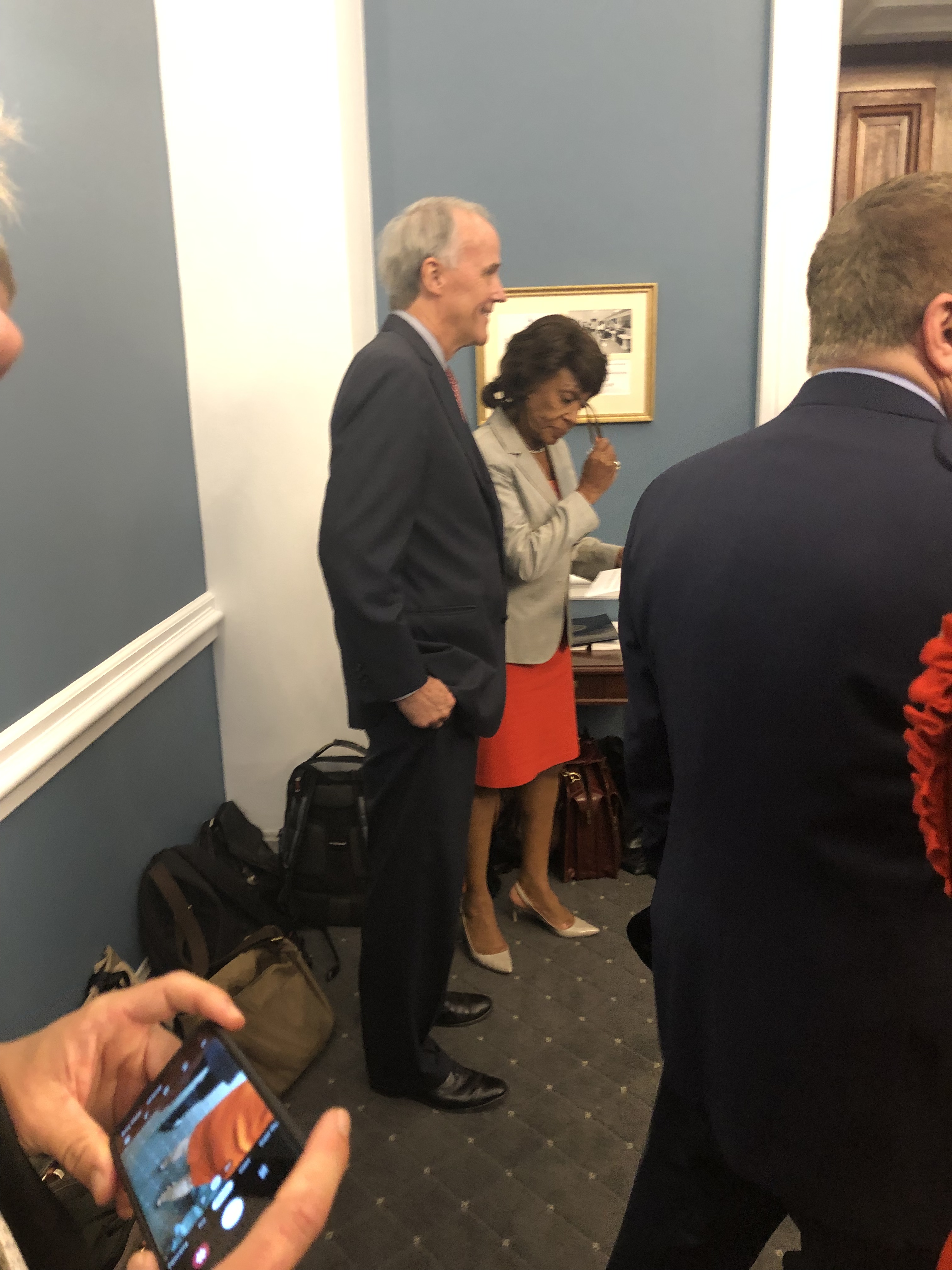 As she was leaving, Zach and I made a beeline for the door to try to catch her on the way out. Zach said that he would take my picture with her. The other black woman in our group had the same idea. When Congresswoman Waters came out of the room, she looked like a woman on a mission. I tried to get a picture with her, and she said, “No. I’ve got to GO,” and she and the young gentleman who was escorting her hurried down the corridor.